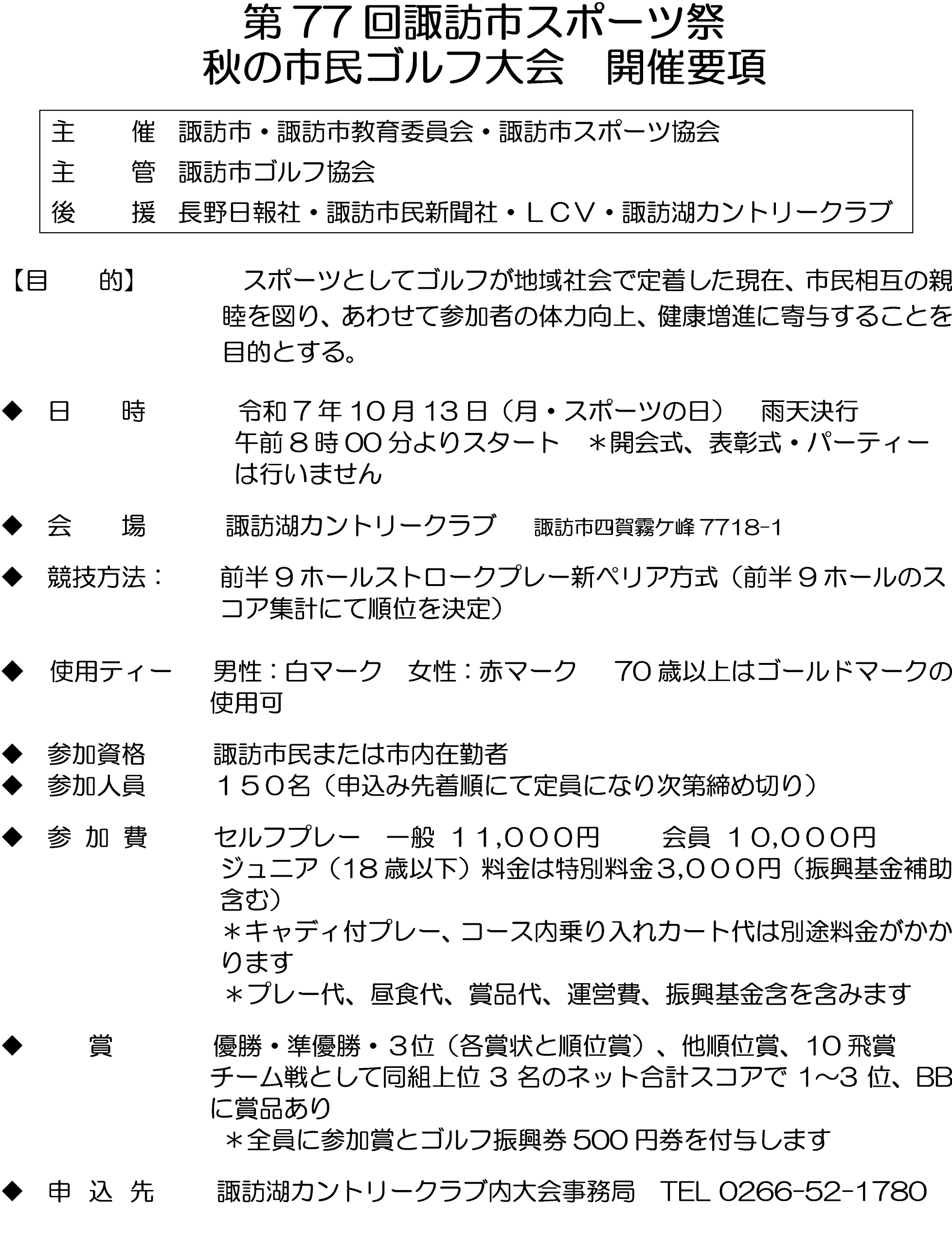 ホーム / 第77回諏訪市スポーツ祭 秋の市民ゴルフ大会参加者募集