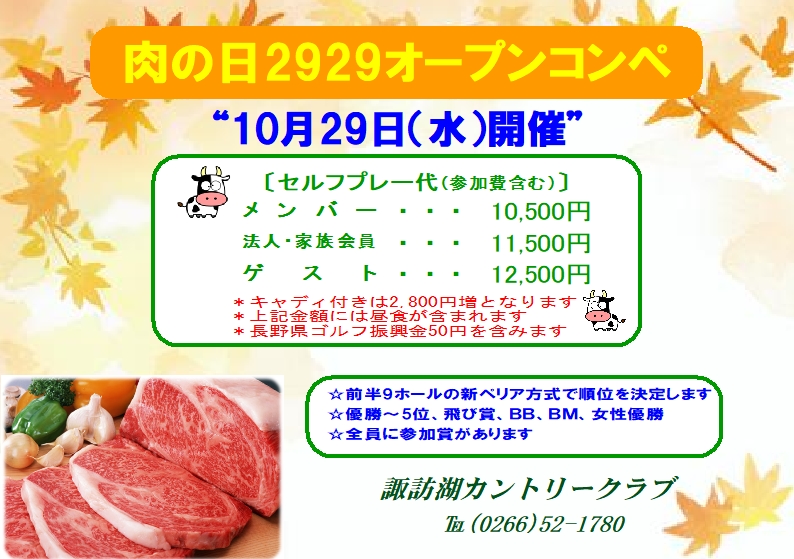 ホーム / 肉の日2929オープンコンペ(10月29日開催)のお知らせ